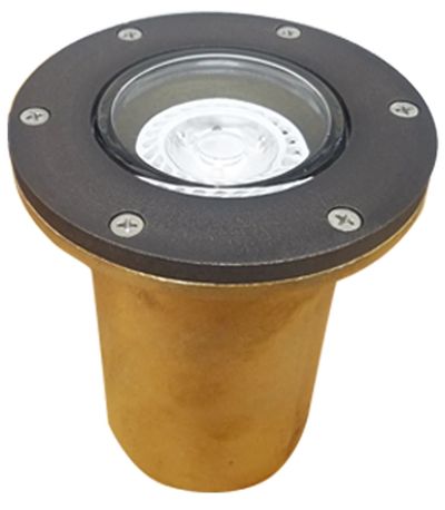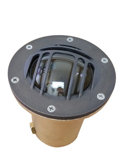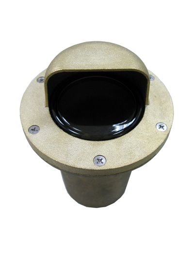 DESCRIPTION: Architectural and commercial grade die cast brass waterproof in-grade well light. The commercial outdoor lighting application glass lens is flush with the top so water cannot puddle. Excellent choice for any application where you don't want an above ground or protruding fixture. Available for antique bronze finish.