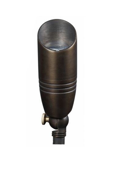 Low voltage outdoor light constructed of solid brass and has a clear and heat resistant convex/flat glass.